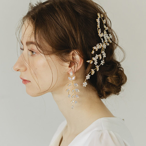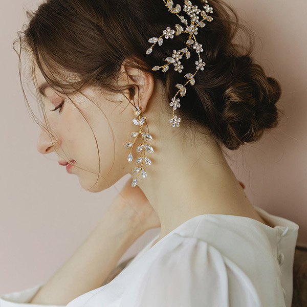 キラキラと上品な輝きが美しいリーフモチーフのブライダルピアスです!