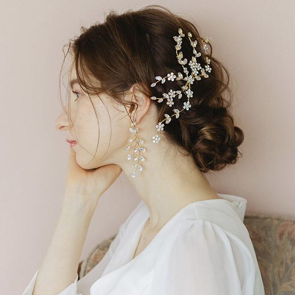 シンプルながらもエレガントさが漂う一品は、ウェディングドレスやパーティードレスとの相性も抜群。