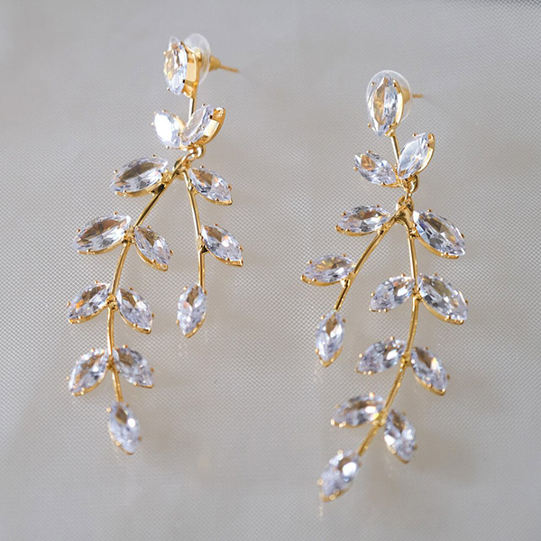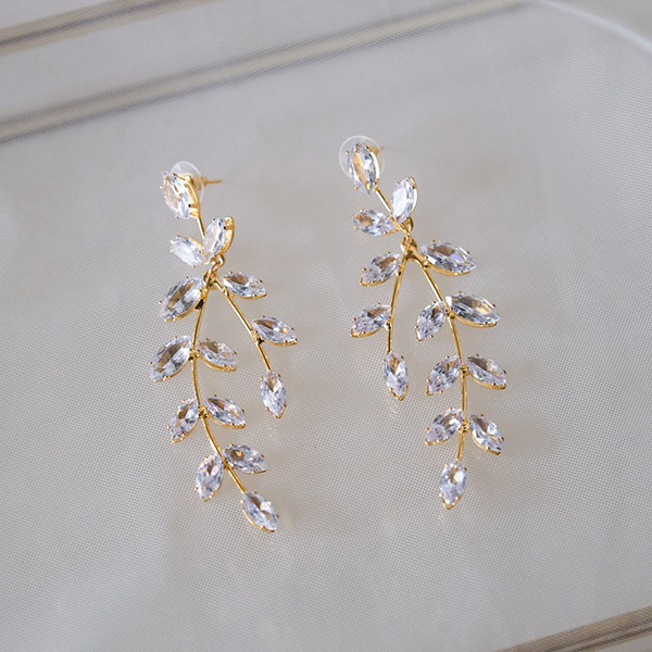 【送料無料】メール便 ウェディングピアス ジルコニア リーフ ゴールド w8-pi74|ウェディング・ブライダルアクセサリーならPIARY(ピアリー)