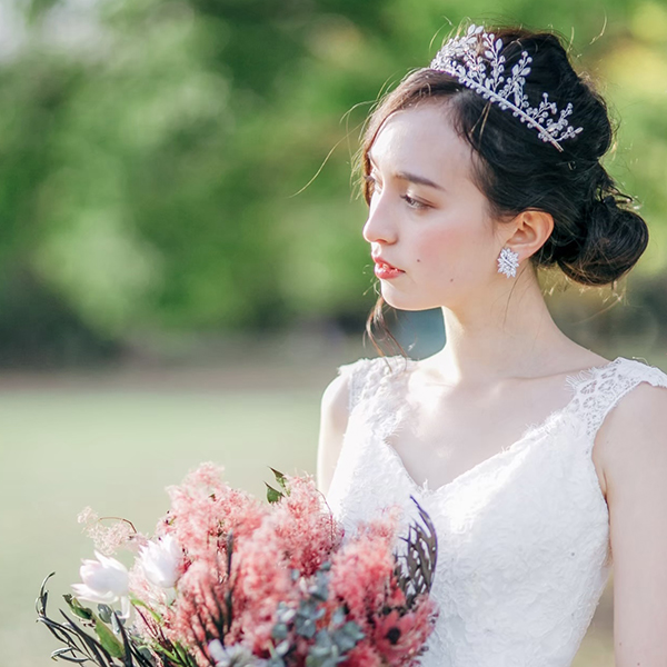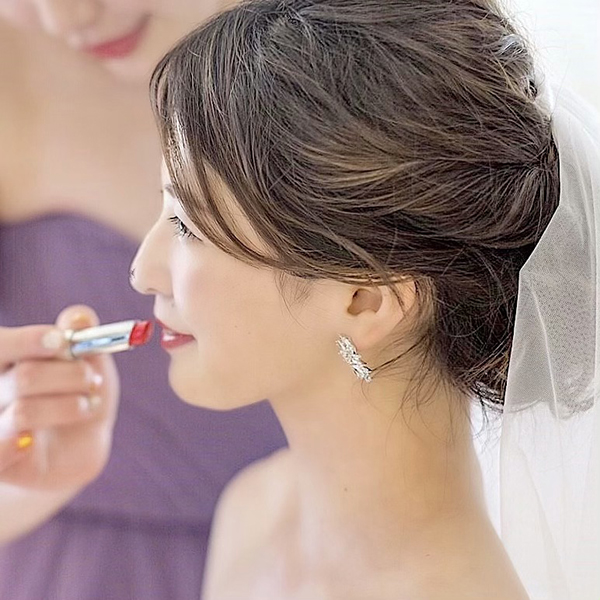 リーフモチーフのジルコニアストーンのピアス。モチーフがリーフのなので上品な中にもナチュラルな雰囲気でお召しいただけます。