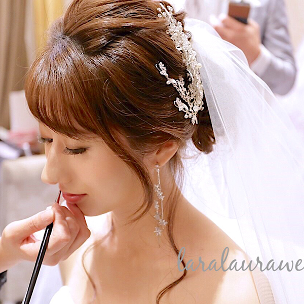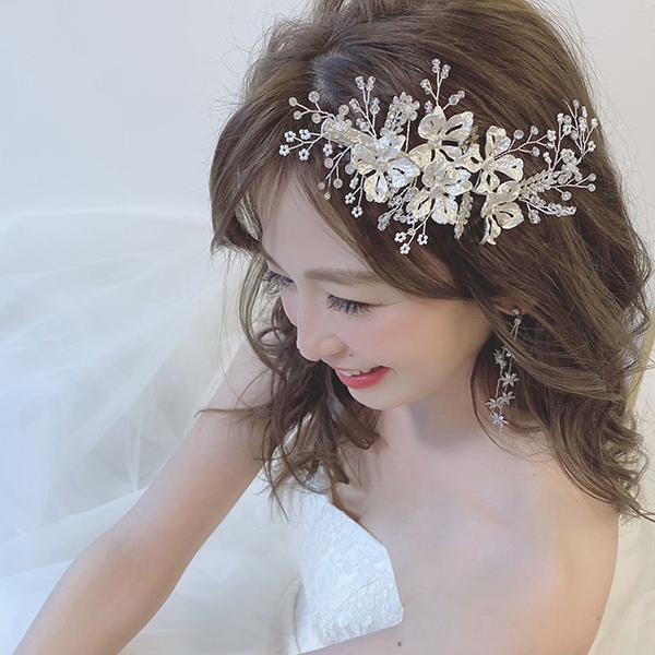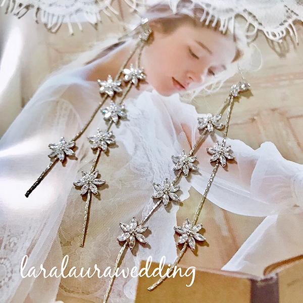 ジルコニアストーンを使った繊細なタッセルピアス。ロングタッセルに散りばめられたフラワーがゆらゆらと揺れてかろやかな花嫁に…。