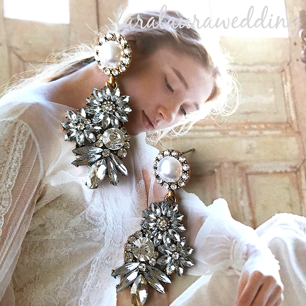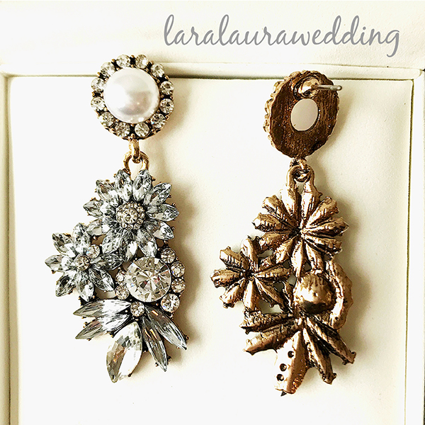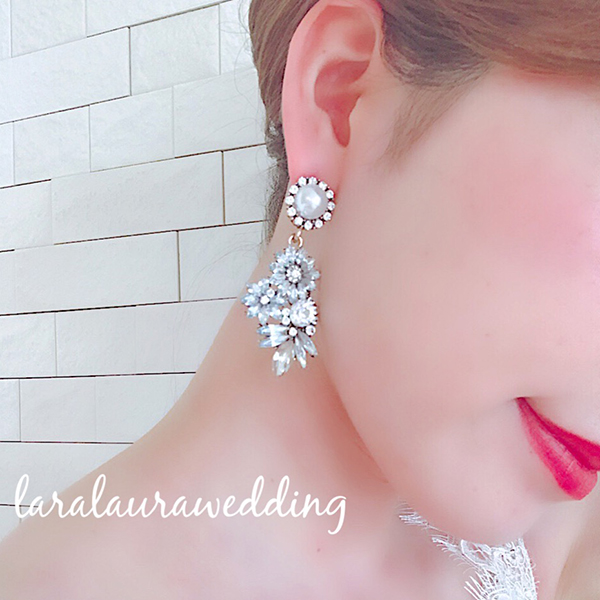 vintageパールとフラワーのピアス。ヴィンテージの雰囲気ながら、フラワーの可愛らしさを詰め込んだピアス。インポートのドレスとの相性も良く、大人っぽい雰囲気に…。
