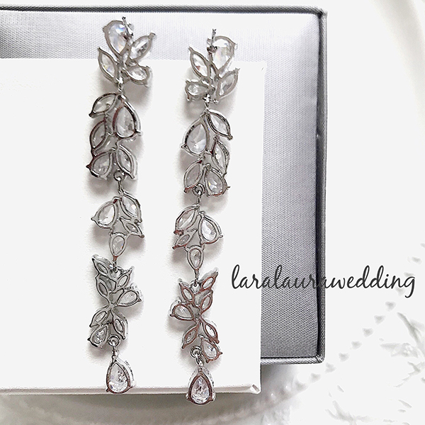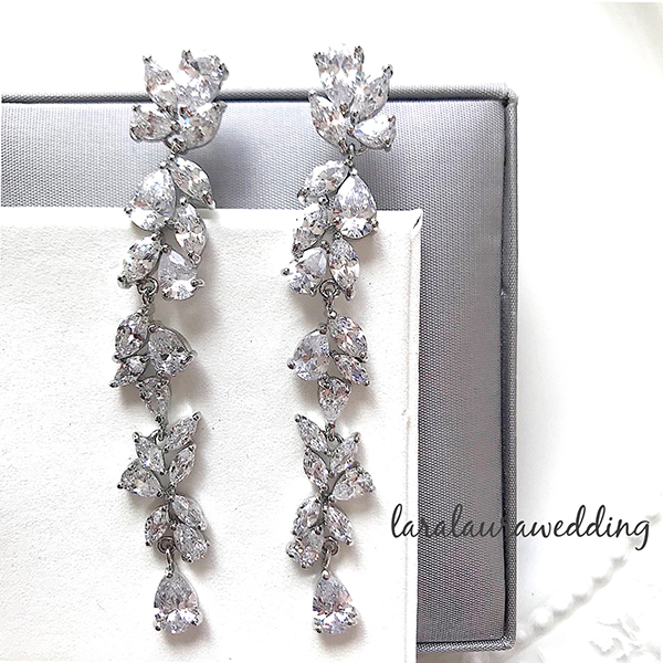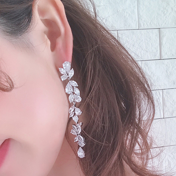 マスキーカットのジルコニアストーンがふんだんに使われたロングピアス。ジルコニアストーンの輝きでお顔周りも華やかに。