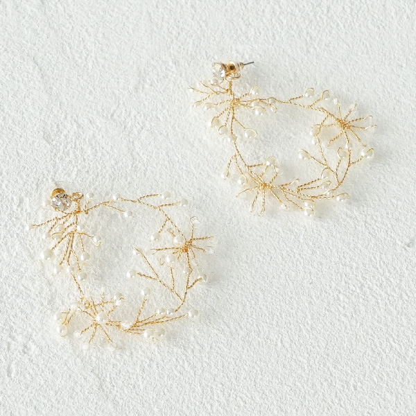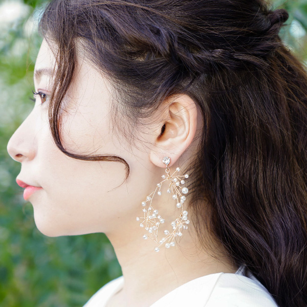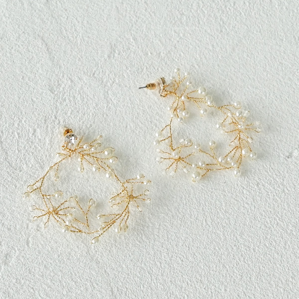 パールとクリスタビーズ、ゴールドのワイヤーでシンプルに紡いだデザイン。小枝のアクセや、フラワーのヘッドドレス合わせていただけます。ウェディングドレス、カラードレス、和装 合わせやすいデザインとなります。