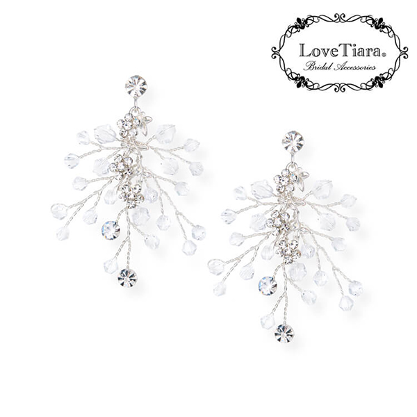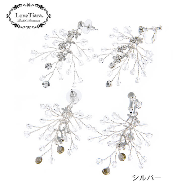 小枝モチーフの繊細なピアス。ワイヤーにクリスタル、ビーズ、パールをミックスさせたナチュラルで揺れるデザインです。ワイヤーワークで曲げられるので、横幅や長さは若干調節可能です。