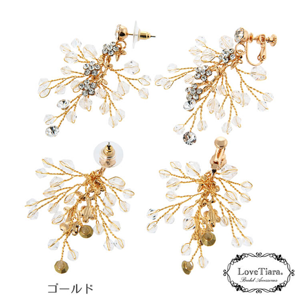【送料無料】ウェディングピアス 小枝 ビジュー ゴールド...