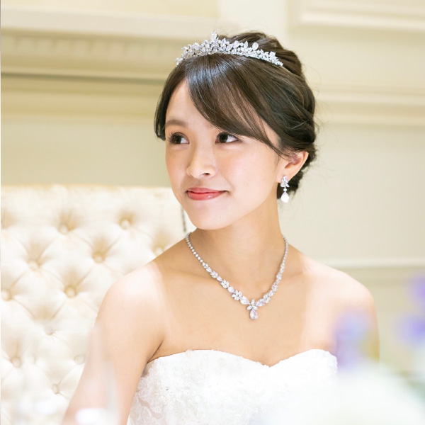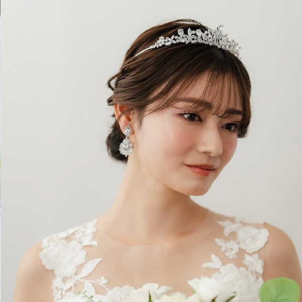 上質なジルコニアを使用したベーシックなデザインのジルコニアティアラです。可愛らしいデザインのドレスにも大人っぽい上品なデザインのドレスにも合わせやすいアクセサリーです。