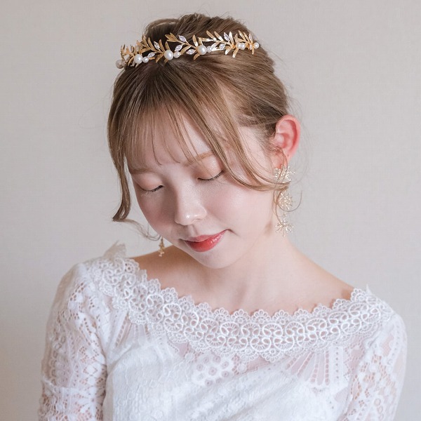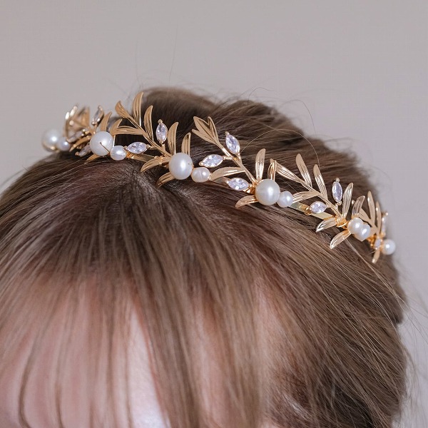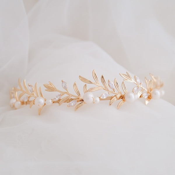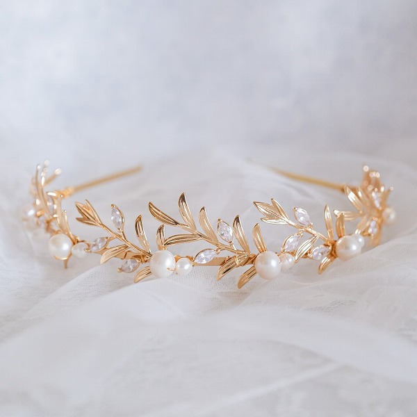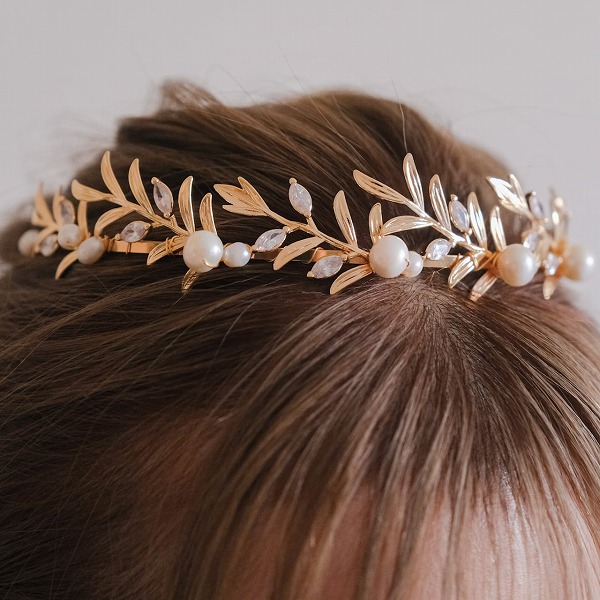 【送料無料】メール便 アンティークティアラ パール ゴールド t9|ウェディング・ブライダルアクセサリーならPIARY(ピアリー)