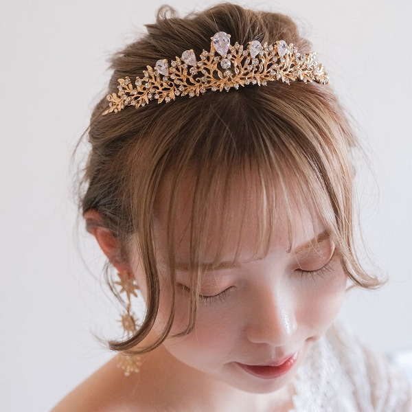 【送料無料】ティアラ ビジュー ゴールド t7|ウェディング・ブライダルアクセサリーならPIARY(ピアリー)
