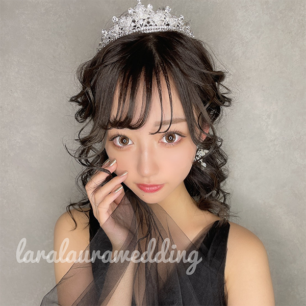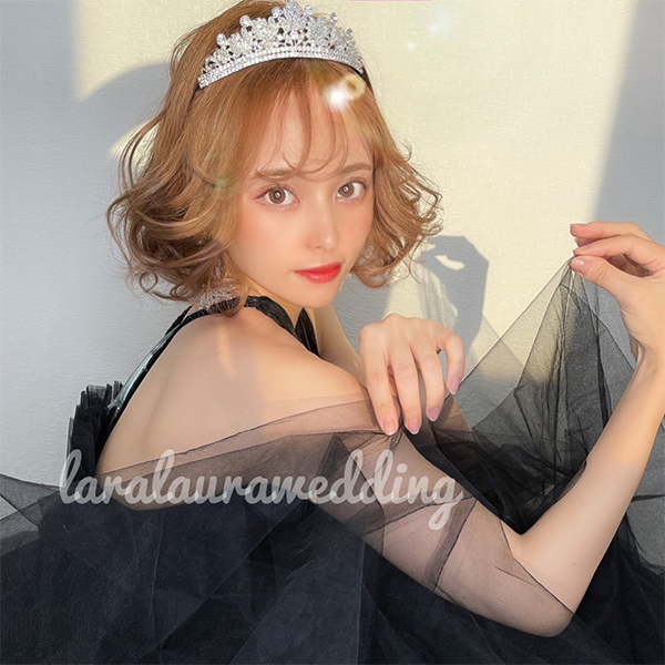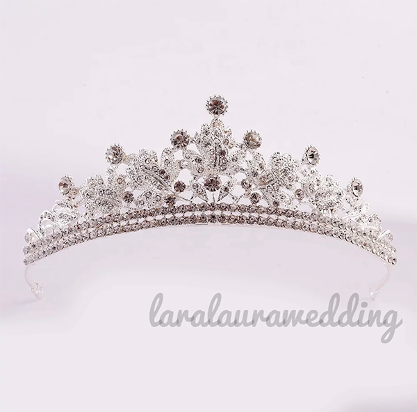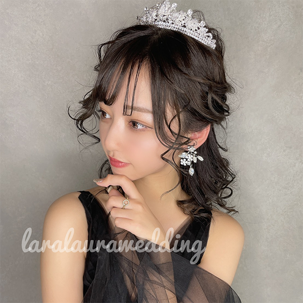 トップ高さと横幅がしっかりある華やかなティアラ。豪華なストーンを纏って上品で優雅な花嫁に…。