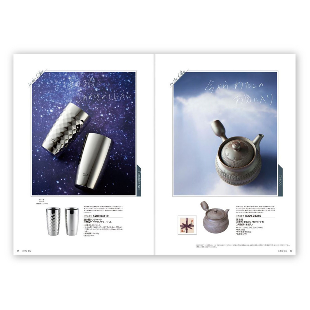一番喜んでもらえる「ありがとう」のカタチ。こだわりの品から高機能の実用品に至るまで、様々なカテゴリーを多彩に取り揃え感謝の気持ちを込めてお届けするカタログギフトです。贈り先さまが商品をゆっくりと選んでいただけるよう、こちらのカタログギフトには、ドリップコーヒーを1袋同封しています。