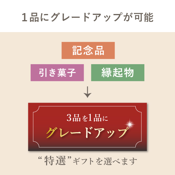 | 商品内訳 | 記念品8,000円/引き菓子1,000円/縁起物1,000円(10,000円+システム料800円) |