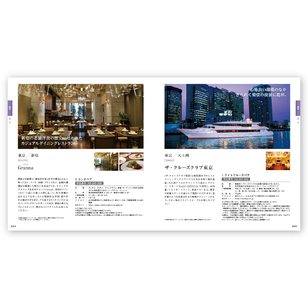 選べる体験ギフト【10900円コース】食を愉しむひとときは、こだわりぬいた食材と食の匠たちの冴えわたる感性がつくりだす非日常の美食空間が集められたカタログギフトです。フレンチスタイルに仕上げた豪華なコースが味わえる東京水道橋「庭のホテル 東京 ダイニング 流」や、選び抜かれた食材を絶妙な火入れで楽しむ、兵庫宝塚「宝塚ホテル 鉄板燒 風雅」など、贅沢ランチプランを多数掲載。ゆったりと大人のランチを楽しんでいただけます。贅沢ランチの他にもクルーズ体験や日帰り温泉など、非日常を楽しめる体験ギフトを多数ご用意しています。食を愉しむひとときを、大切な方に贈りませんか?