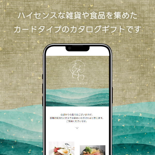 感謝の気持ちを和のかたちで。美しい和紙のように、静かに心を伝えるカード型カタログギフト。カード型なので、お持ち帰りいただく贈り物に最適です。