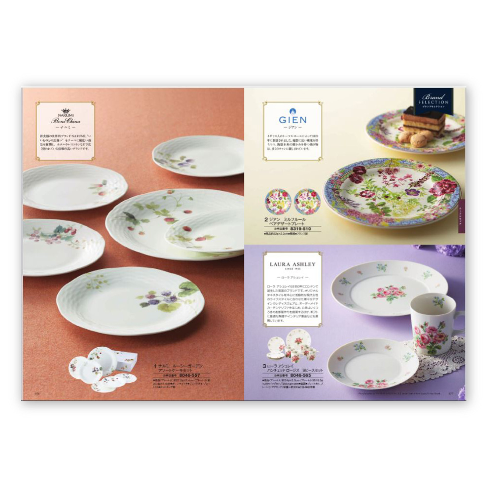 特集のテーマごとに商品が掲載されており、話題のSDG'sや日本製に特化した商品等が紹介されています。華やかなブーケが印象的な表紙デザインで、お祝いやお礼など幅広いシーンで活躍する人気のカタログギフトです。