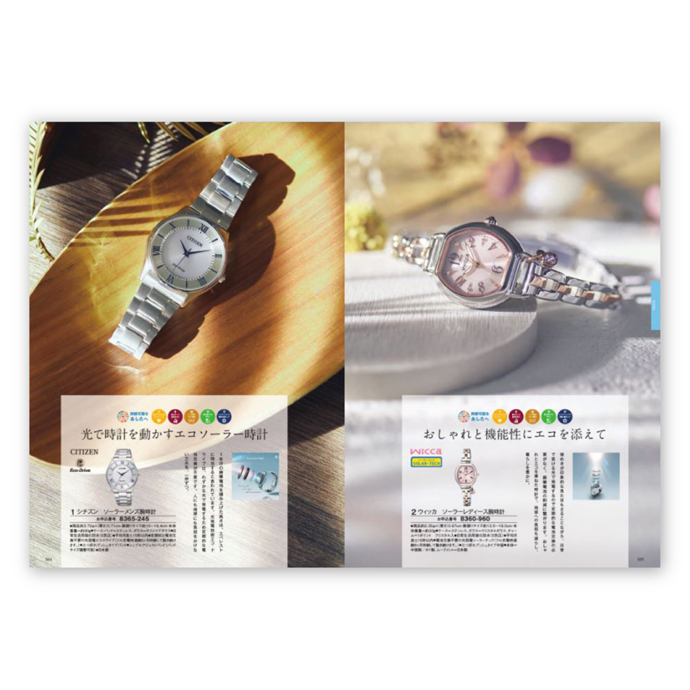 特集のテーマごとに商品が掲載されており、話題のSDG'sや日本製に特化した商品等が紹介されています。華やかなブーケが印象的な表紙デザインで、お祝いやお礼など幅広いシーンで活躍する人気のカタログギフトです。