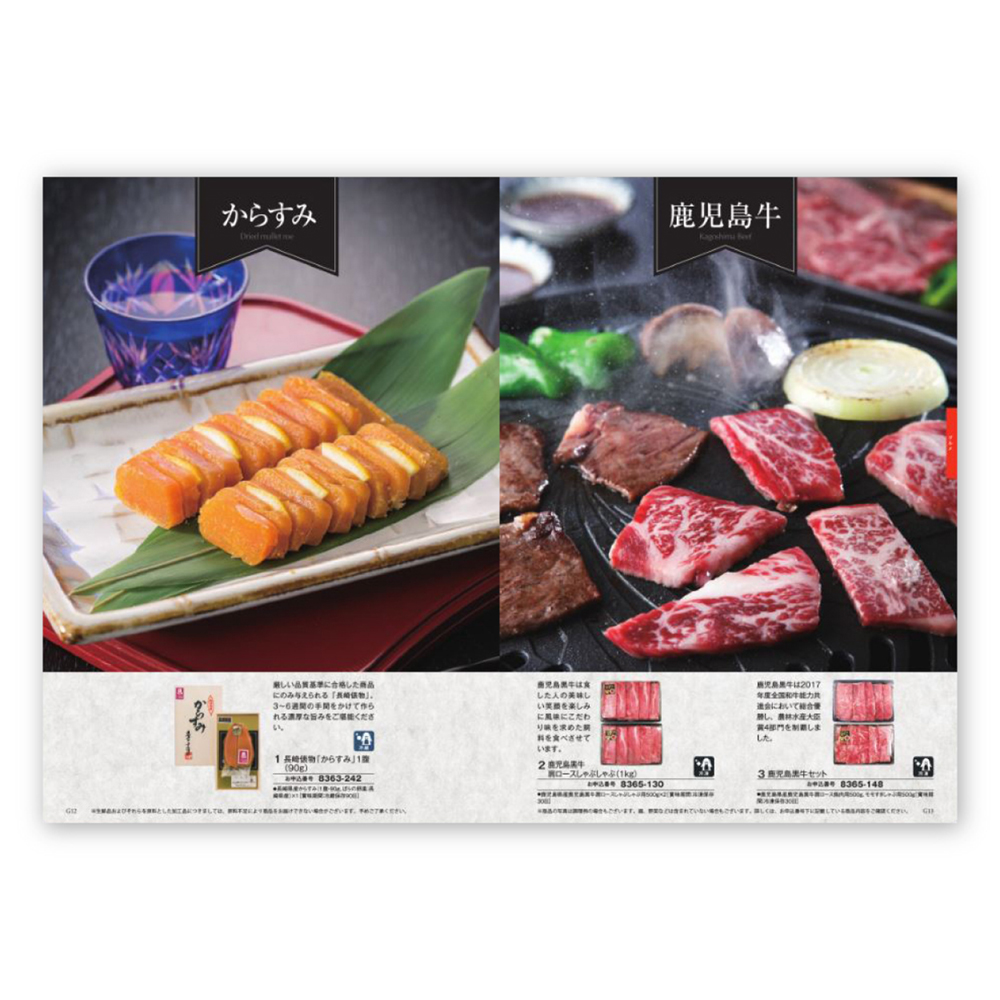 グルメはこだわりの商品をご用意。厳しい品質基準に合格した商品にのみ与えられる「長崎俵物」のからすみは手間をかけて作られた上質な旨みを感じられます。ブランド牛や厳選されたお米など様々なジャンルの逸品を掲載。幅広い掲載内容も人気のひとつです。