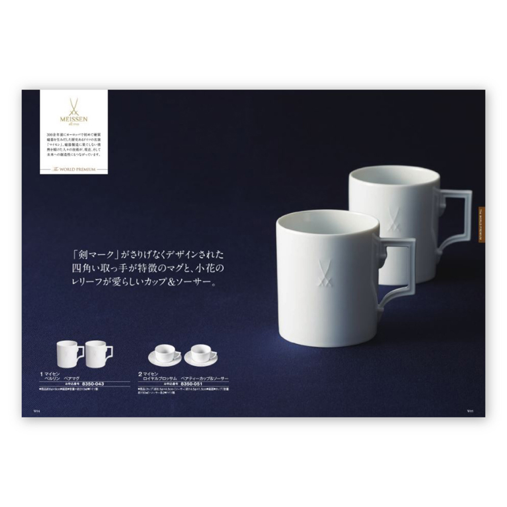 また、「マイセン」のペアマグやティーカップ&ソーサーは取っ手が特徴的で、さりげなくデザインされているブランドロゴの[剣マーク]が美しい逸品。