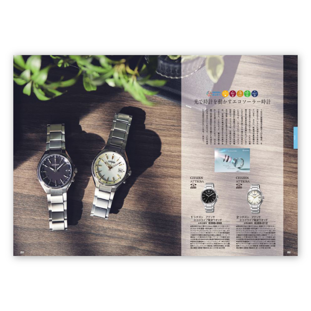 「シチズン アテッサ」からはエコ・ドライブ電波ウォッチを2種類のカラーで掲載。日常のわずかな光から発電可能なため、定期的に電池交換をする必要がなく正確で快適な暮らしをお送りいただけます。