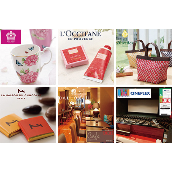 おしゃれで機能的な生活雑貨、人気店のスイーツ、アイデアや機能性に優れた普段使いのファッション小物からお子さまのおもちゃまで幅広いジャンルの商品からお選びいただけます。品物やグルメだけでなく、人気旅館のペア日帰り入浴券などの体験型商品も充実しています。