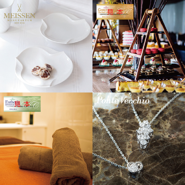 1度使ってみたかった美容アイテムや、毎日の食卓を楽しくしてくれる華やかな食器、おしゃれな収納家具や家電など大型の商品、全国各地の高級フルーツや特別な日に味わいたいブランド和牛、非日常体験を叶える人気レストランのペアランチや高級旅館のペア日帰り入浴などの体験商品など、幅広く掲載。