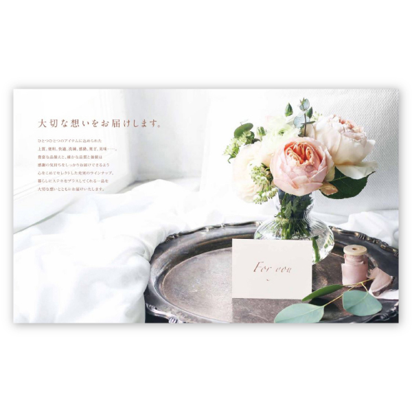 一般的なカタログギフトより一回り大きい大判カタログとなっており、写真や文字が大きく読みやすく、ご年齢、性別関係なくどんな方にでも喜んでいただけるカタログギフトになっています。