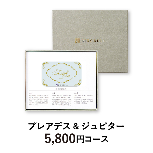 カード型 リンベルカタログギフト プラスグルメ【5800円コース】プレアデス&ジュピターは、おしゃれで機能的な生活雑貨やキッチングッズ、憧れの名店の味や産地こだわりの果物など、幅広いジャンルをお楽しみいただける総合カタログギフトです。