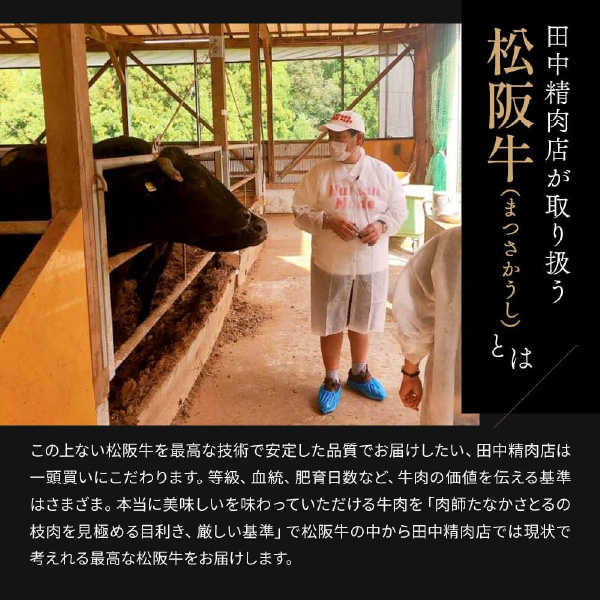肉師たなかさとるの長年にわたり培った知識と卓越された目利きで松阪牛を厳選。一番良い状態で最高なカットでお届けします。