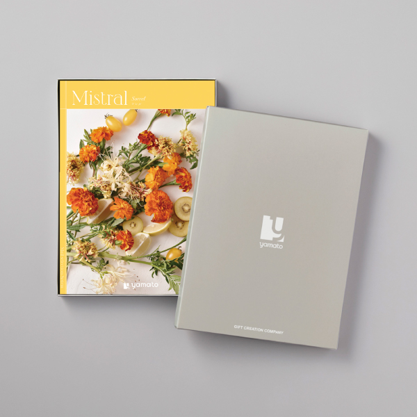 花をモチーフにした、美しい表紙が特徴のカタログギフト「ミストラル」は、「ほんものを贈ろう」をテーマに、国内外で愛されるブランドの品々を集めた総合カタログギフトです。