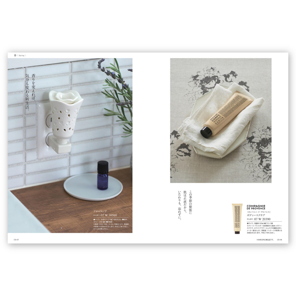 雑貨、グルメ、体験など幅広いラインナップが魅力の総合カタログギフト。春夏秋冬に合わせたおすすめアイテムの紹介や、暮らしを楽しむヒントにまつわる商品など読んでいるだけでも楽しい1冊です。