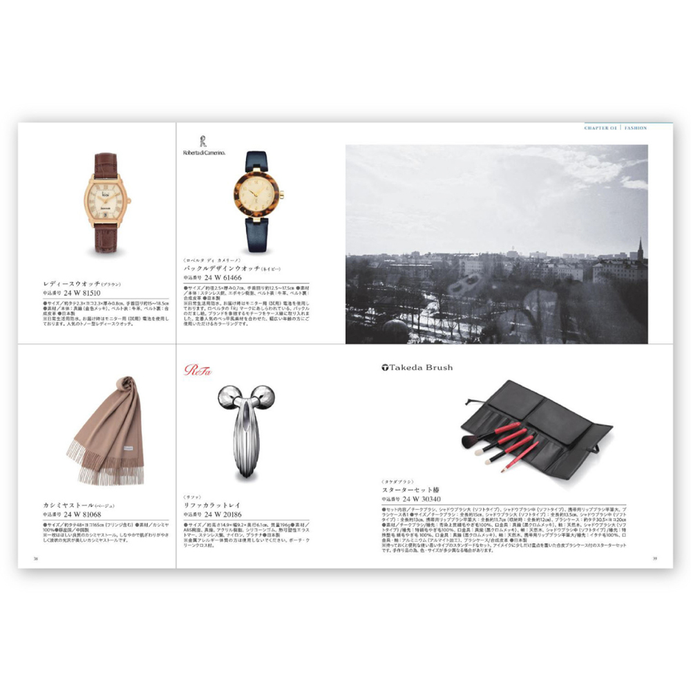カタログの紹介ページには「つくりのいい上質なものたちとの暮らしが、特別な1ページを紡ぎます。あなたの物語に、美しさと煌めきを。」とコンセプトが表記されており、そのコンセプトにぴったりの品々を多数ラインナップしています。