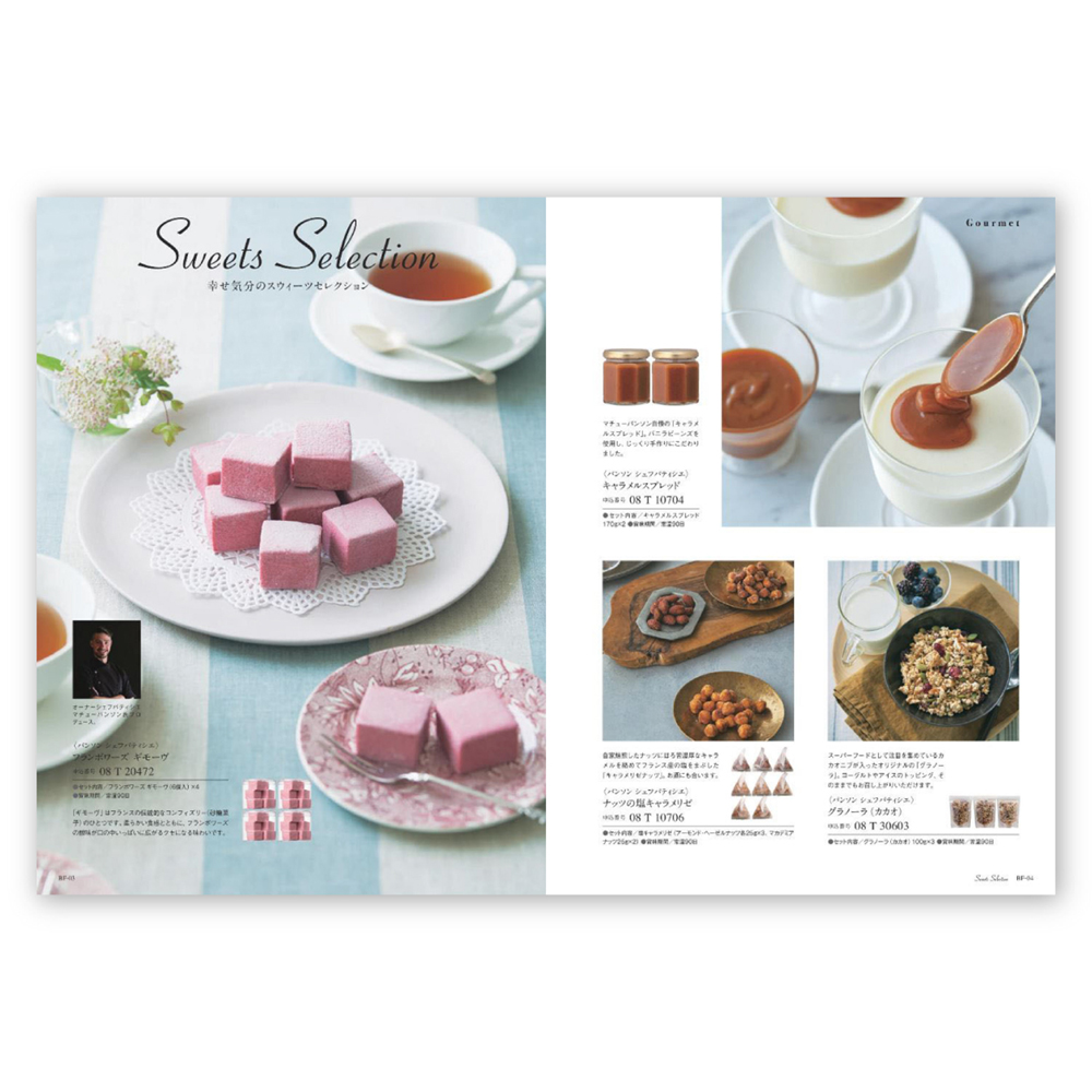 カタログギフト SAYU【4900円コース】ゆうおうは、幸せ気分のスウィーツセレクションより、ピンクのかわいいキューブ型の砂糖菓子フランボワーズ ギモーヴや、バニラビーンズを使用し、じっくり手作りにこだわったマチューバンソン自慢のキャラメルスプレッドなどご紹介しています。