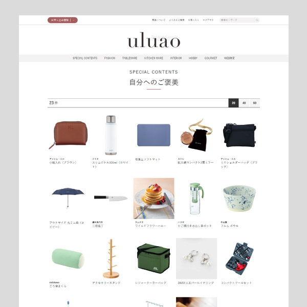 カードカタログ uluao(ウルアオ)【2800円コース】ミルドレッドは、手軽にお使いいただけるコース価格で、誕生日やちょっとしたお礼など、何を贈ろうか迷った時の強い味方。グルメから雑貨まで、2800円コースとは思えないほど充実したラインナップとなっています。商品選択用のサイトを訪れると、ネットショッピングを楽しむような感覚にさせるおしゃれな写真で彩られた商品が並びます。