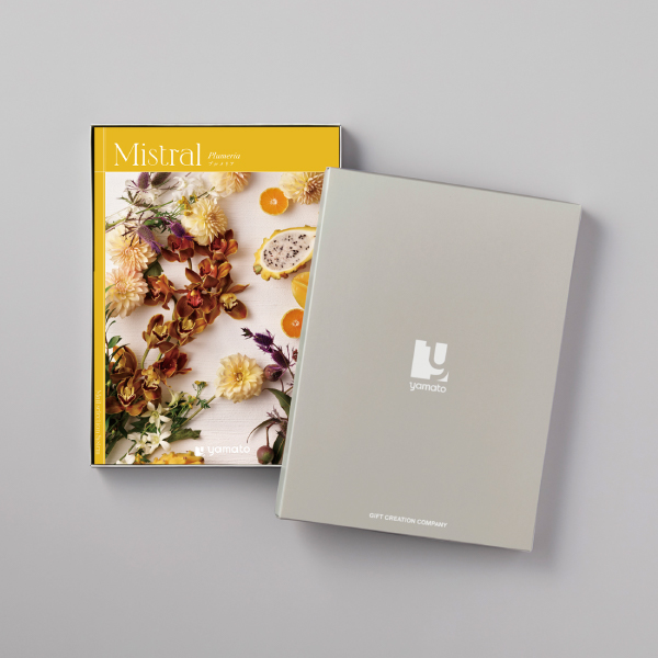 花をモチーフにした、美しい表紙が特徴のカタログギフト「ミストラル」は、「ほんものを贈ろう」をテーマに、国内外で愛されるブランドの品々を集めた総合カタログギフトです。