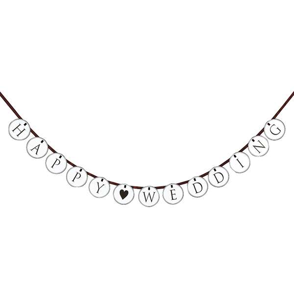 キュートなサークル形のフラッグガーランドに「HAPPY WEDDING」の文字。