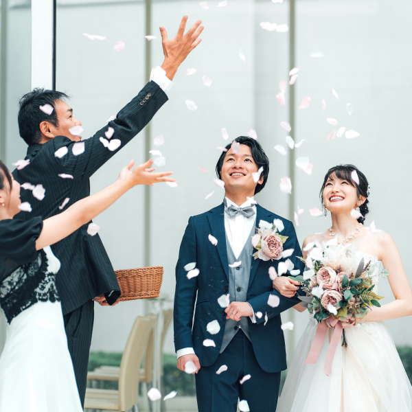 ふわりと羽根が舞うエンジェルシャワーは、まるで天使の祝福を受けているようにロマンティック。