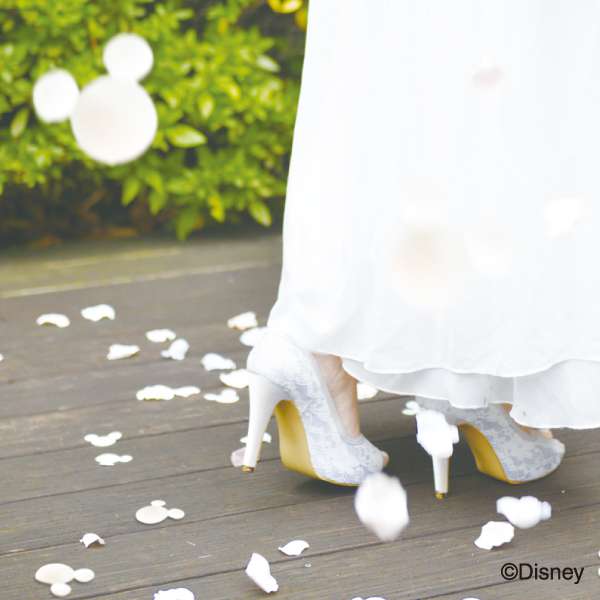 かわいらしいミッキー型のフラワーシャワーで、幸せいっぱいのおふたりにサプライズな演出を…。