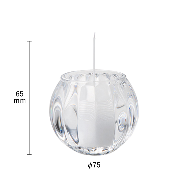 丸いフォルムが可愛らしいキャンドルグラスは、灯りを灯すとテーブルに美しく放射線状の光を灯し、炎の揺らめきに合わせて光の筋が美しくゆらめきます。