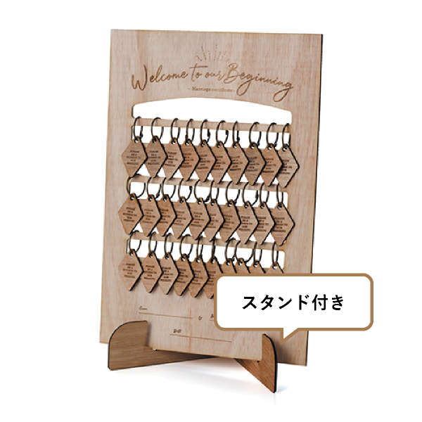 | 内容物 | ■ボード×1 ■ウッドチャーム×30枚 ■リング×30個 ■ボードスタンド×2 |