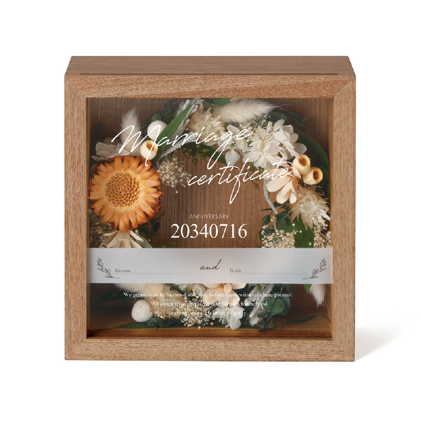 これから共に歩んでいくふたりの誓いを、リースへ込めて…。ふたりの愛を永遠に誓う結婚証明書。