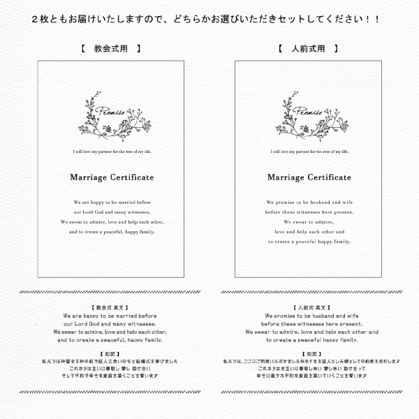 ゲストが証人となる結婚証明書は、おふたりの結婚を証明する想いのこもった品に。結婚式のあとは、想い出を飾るインテリアとして、新居に飾っていただけます。
