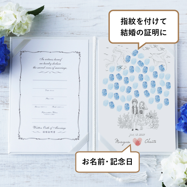 海が好きなおふたりにおすすめ!指紋が織りなす鮮やかな海。これからの人生が豊かなものとなるよう願ってゲストと一緒に彩りましょう。