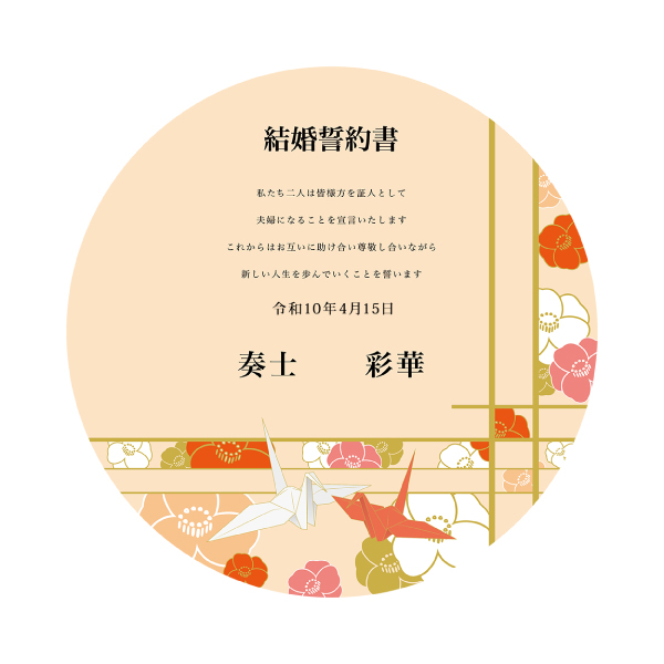 おふたりが歩んでいくこれからの人生を華々しく飾る折鶴のモチーフが描かれています。