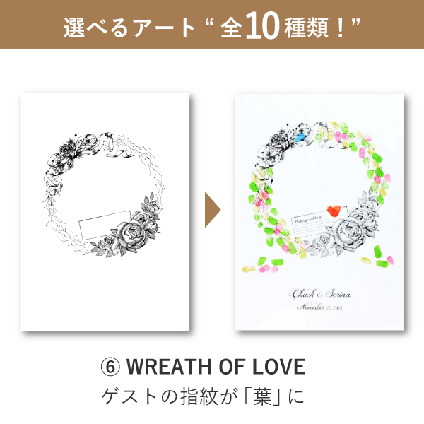 リースの画にしました! インクがセットだったので用意する手間が省けて助かりました。ただ、ほとんどの方が親指か人差し指で捺してくれるので!男性ゲストが多いとあっという間に埋まります!スペース的な意味で(笑) どんな形であれ、完成した証明書はとってもきれいですよー!!!