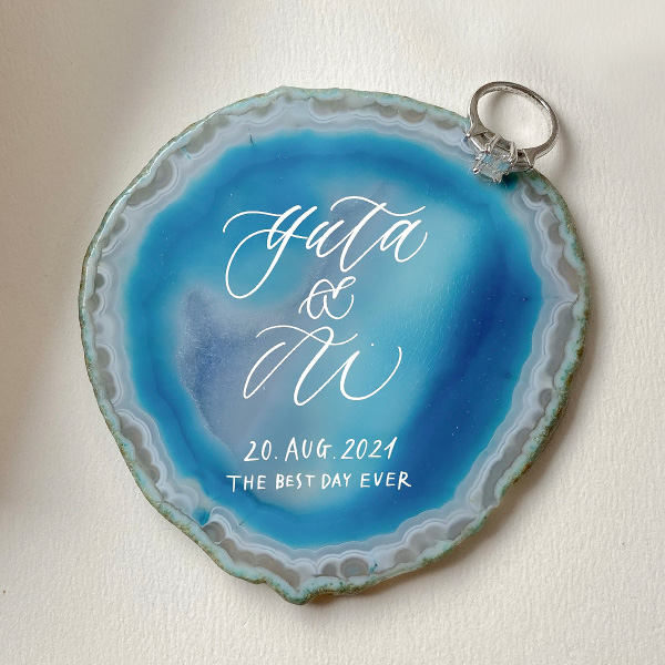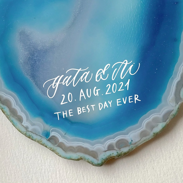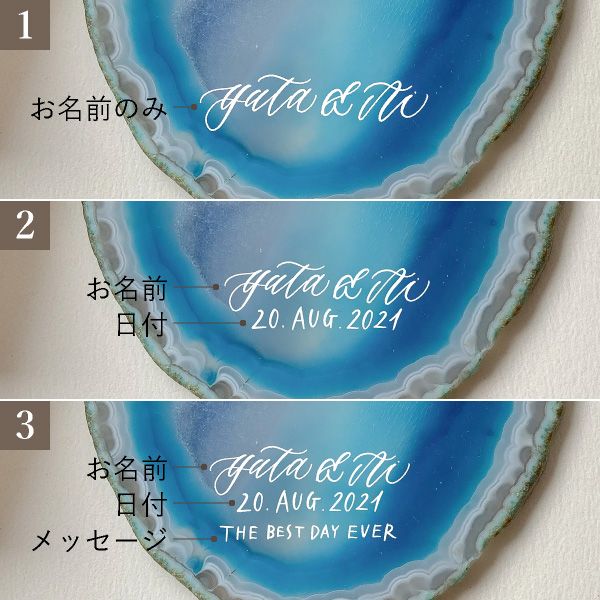 天然石にはひとつとして同じものはないので、カリグラフィーも加わり世界にひとつだけのオリジナルアイテムになります。
