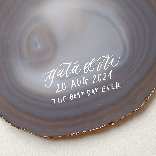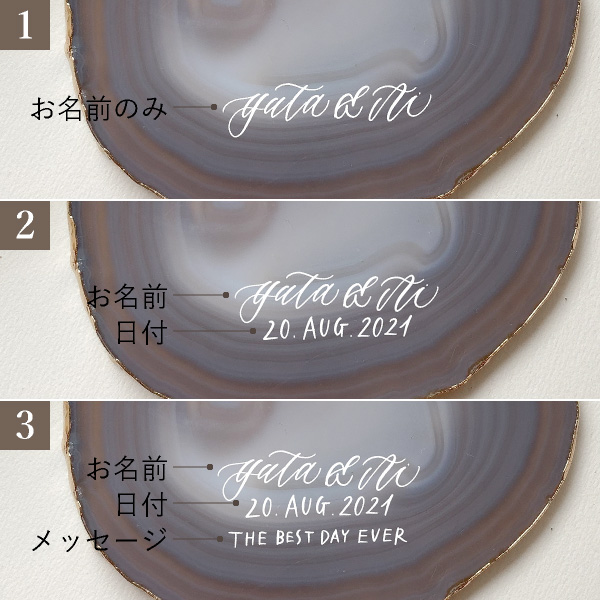 天然石にはひとつとして同じものはないので、カリグラフィーも加わり世界にひとつだけのオリジナルアイテムになります。