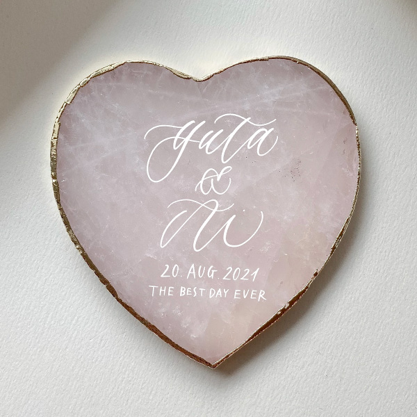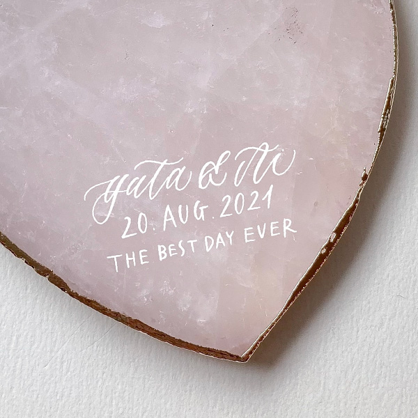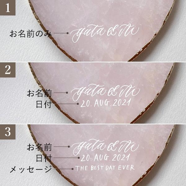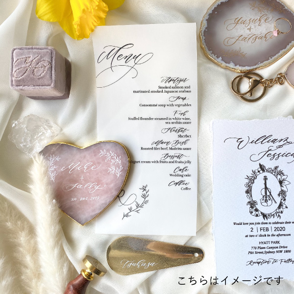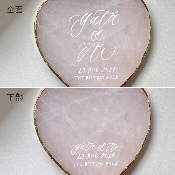 天然石にはひとつとして同じものはないので、カリグラフィーも加わり世界にひとつだけのオリジナルアイテムになります。