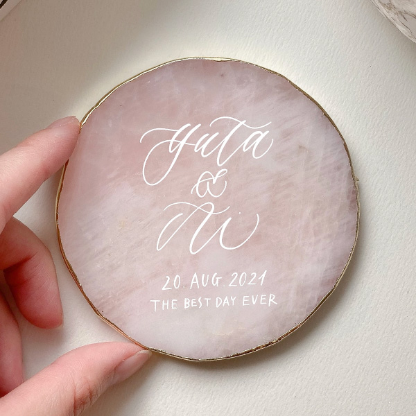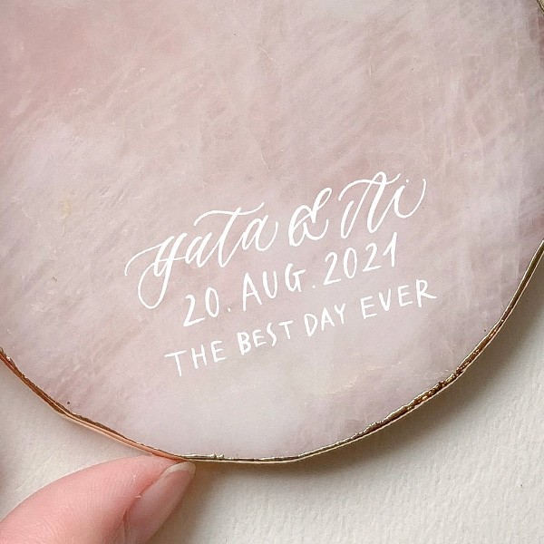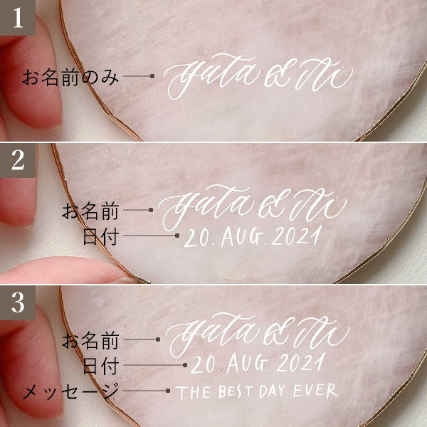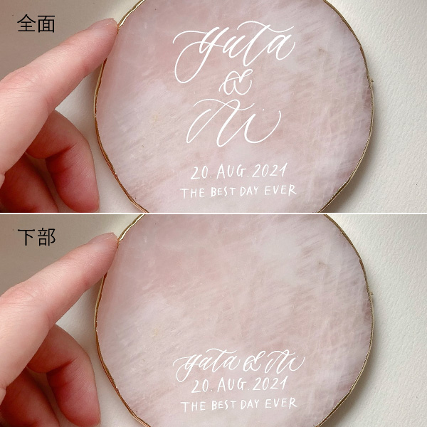 天然石にはひとつとして同じものはないので、カリグラフィーも加わり世界にひとつだけのオリジナルアイテムになります。