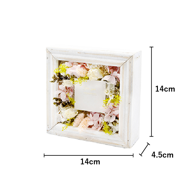 | 内容 | ドライフラワー、プリザーブドフラワー、杉、紙、スチール |