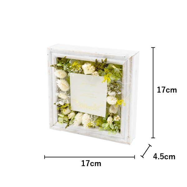 | 内容 | ドライフラワー、プリザーブドフラワー、杉、紙、スチール |
